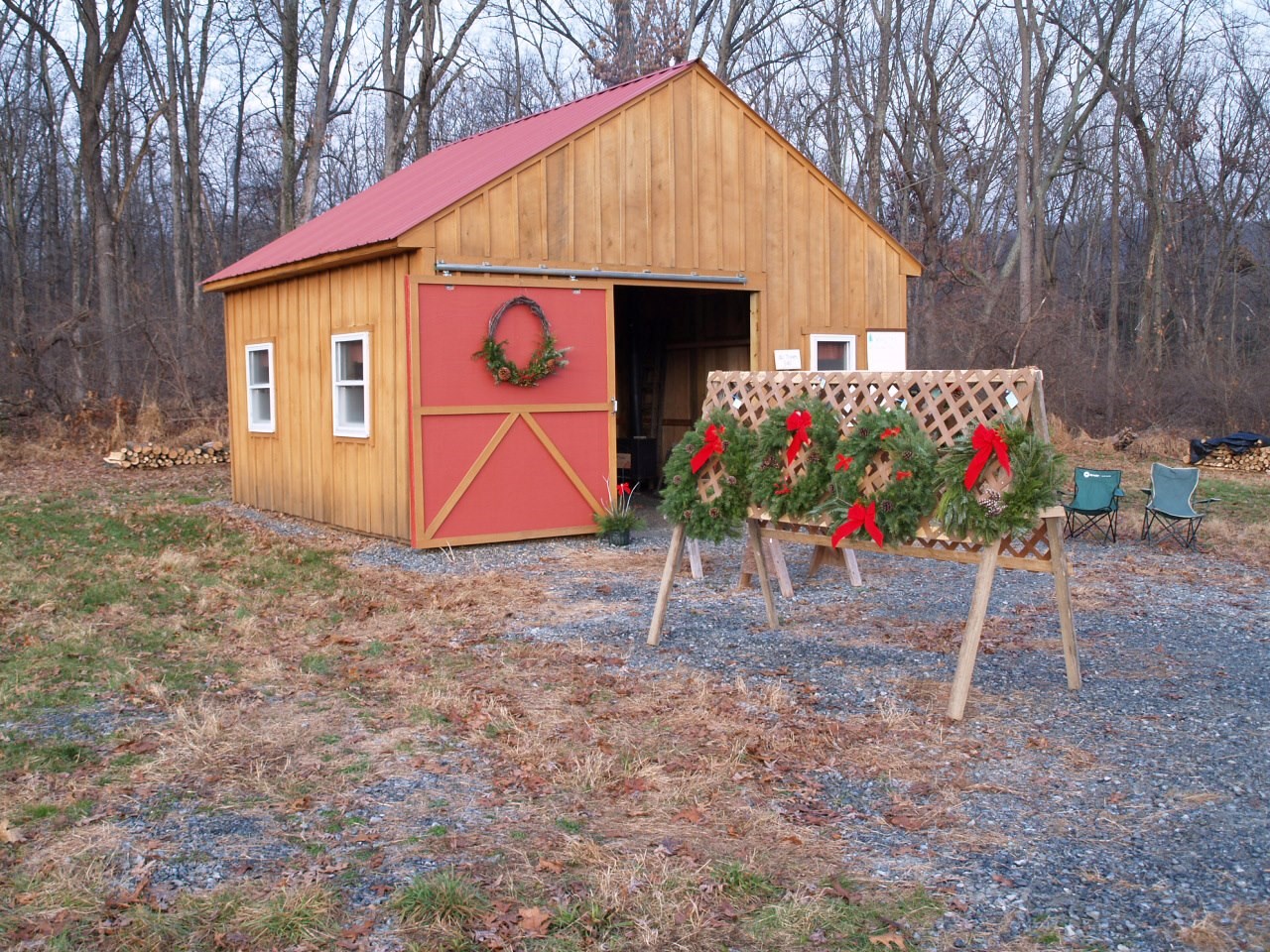 We have a nice selection of choose and cut fir, spruce, and pine. New this year we will have fresh cut Fraser fir from 7-9 feet tall. Come into our Christmas barn to warm up by the wood stove and enjoy some free hot chocolate and cookies. We also have many homemade products for sale in the Christmas Barn such as raw wildflower honey, beeswax soap, wood crafts, holiday wreaths, ornaments, and gifts.
